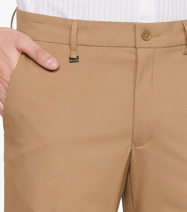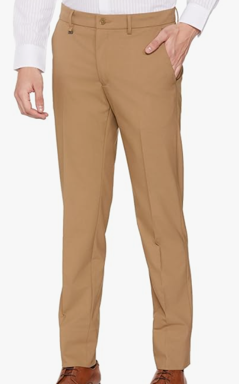 Van Heusen Men's mid-rise slim-fit formal trousers offer a polished, modern look with superior comfort. Featuring a soft-touch fabric and an auto-flex waistband, these premium trousers are perfect for all-day office wear or formal occasions.